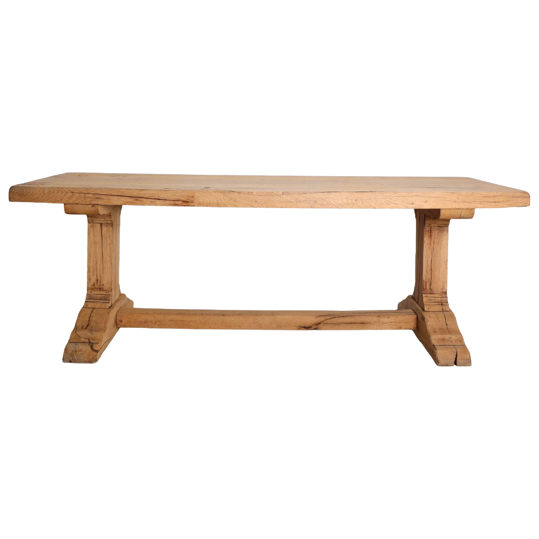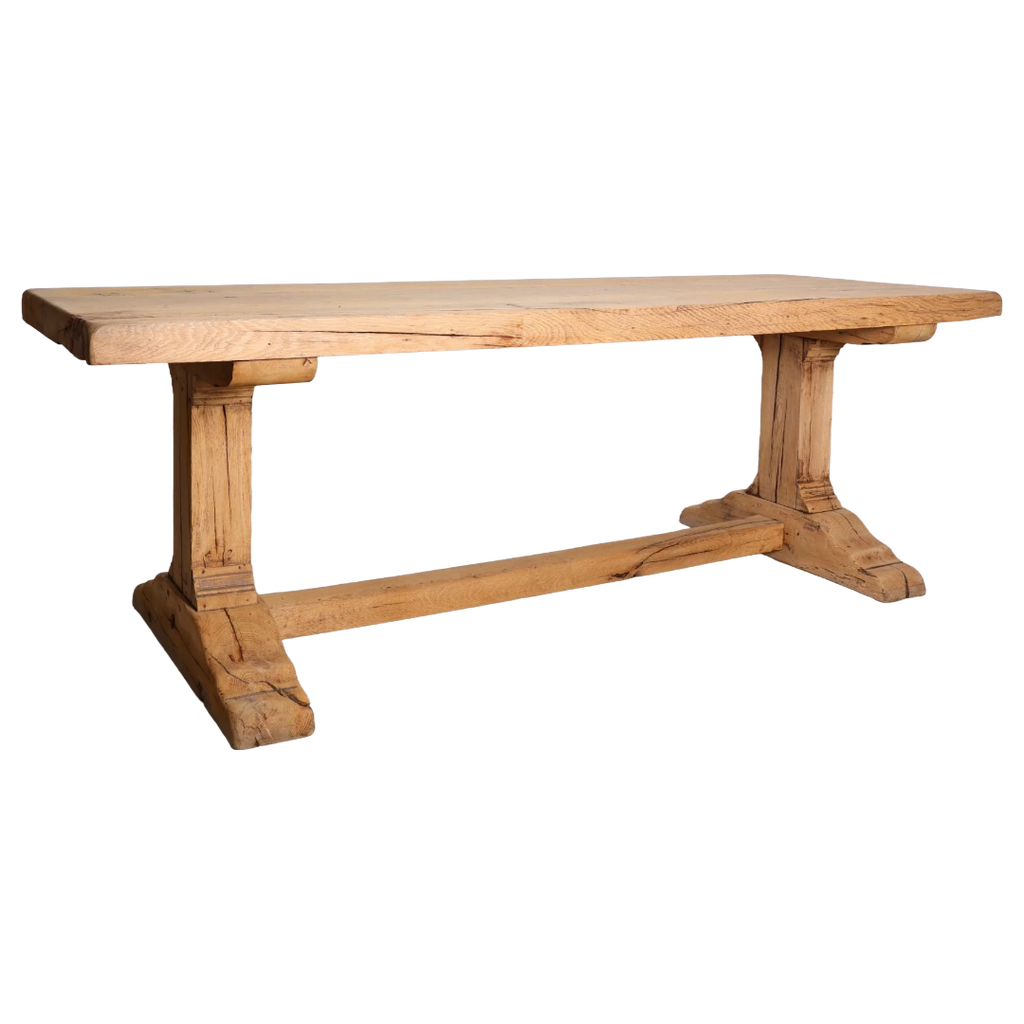 Solid Thick Top Oak Trestle Base Table