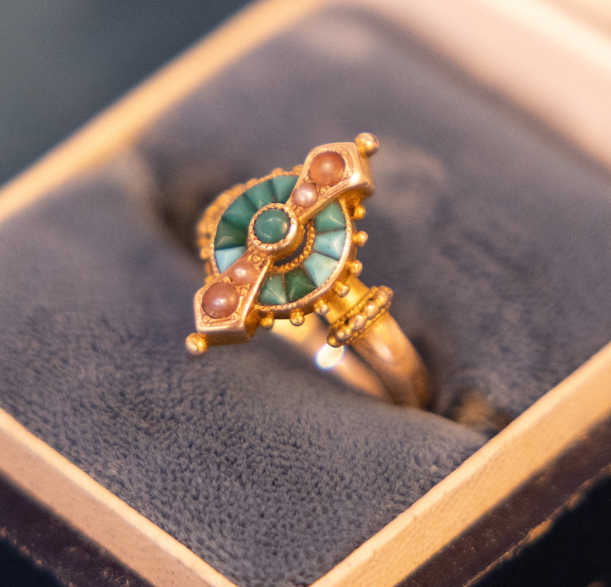 Victorian Turquoise and Pink Pearl Ring