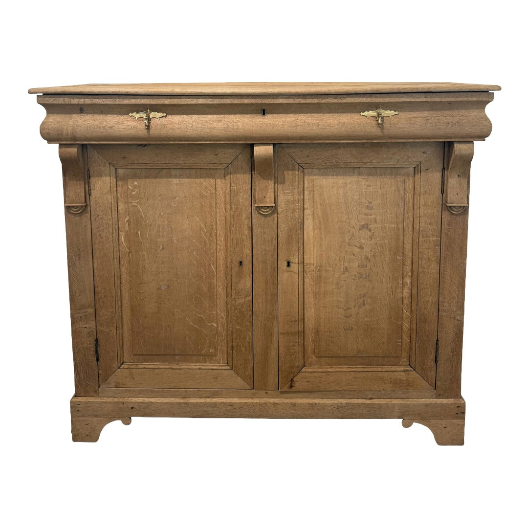 French Oak Two Door One Drawer with Curved Drawer and Corbels Console